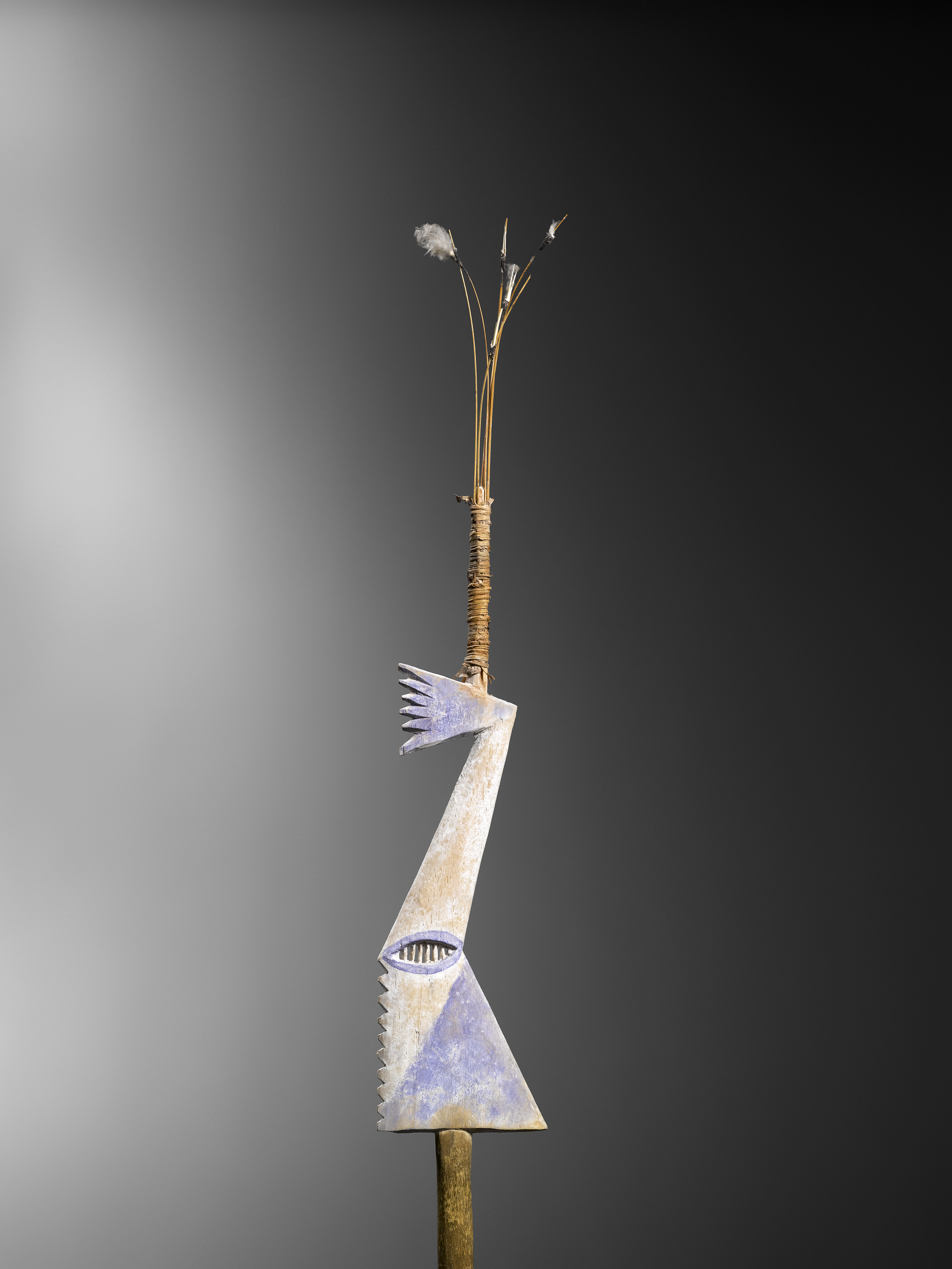 Bâton de danse, Tolai, Nouvelle-Bretagne. Bois, fibres, plumes et pigments. H. : 54 cm.