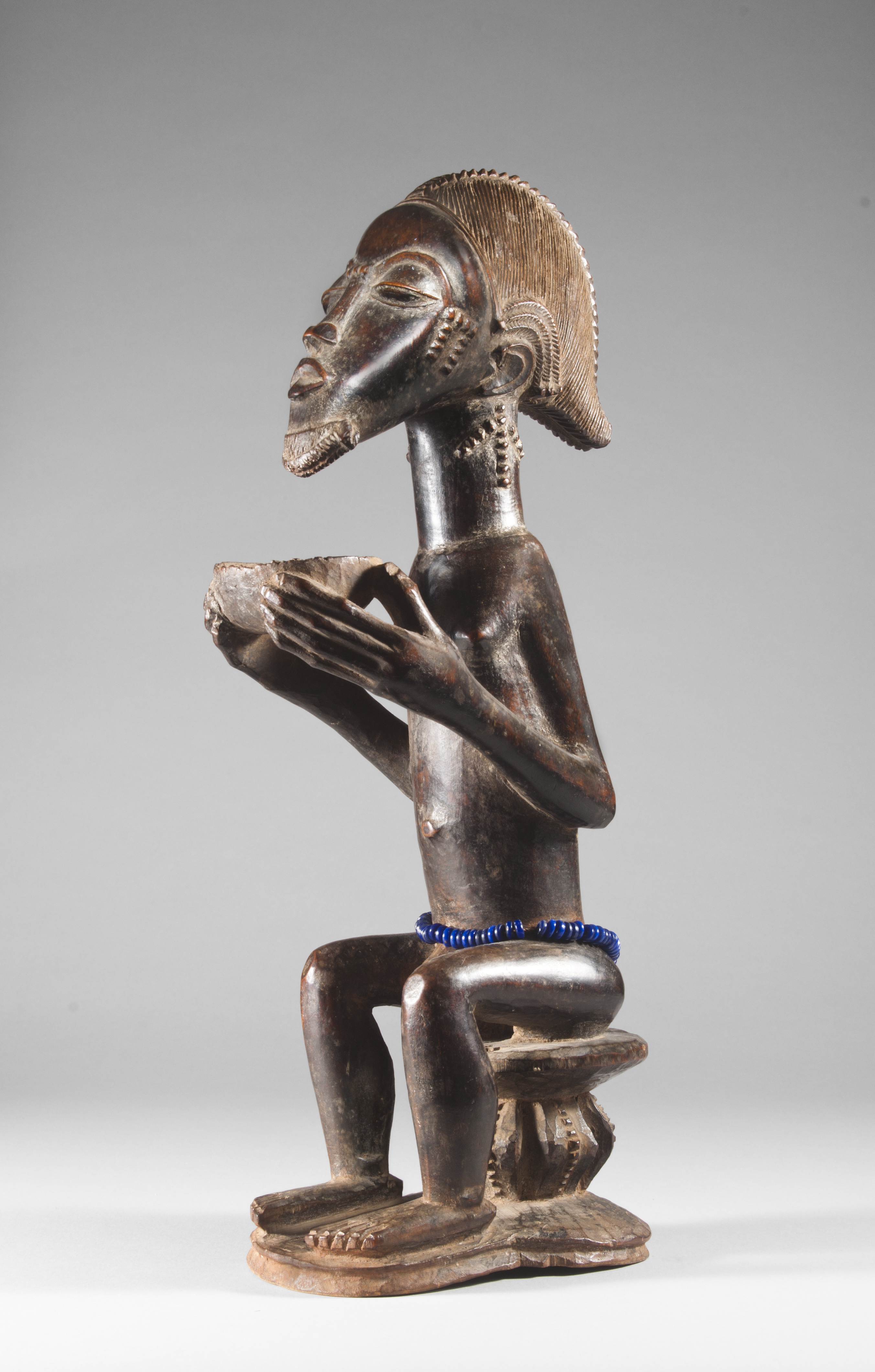 Figurine masculine assise tenant une coupe, « Maître d’Himmelheber », Côte d’Ivoire, région baoulé, XIXe siècle. H. : 38,4 cm. © Collection privée, New York. Collectée par Hans Himmelheber en 1933.
