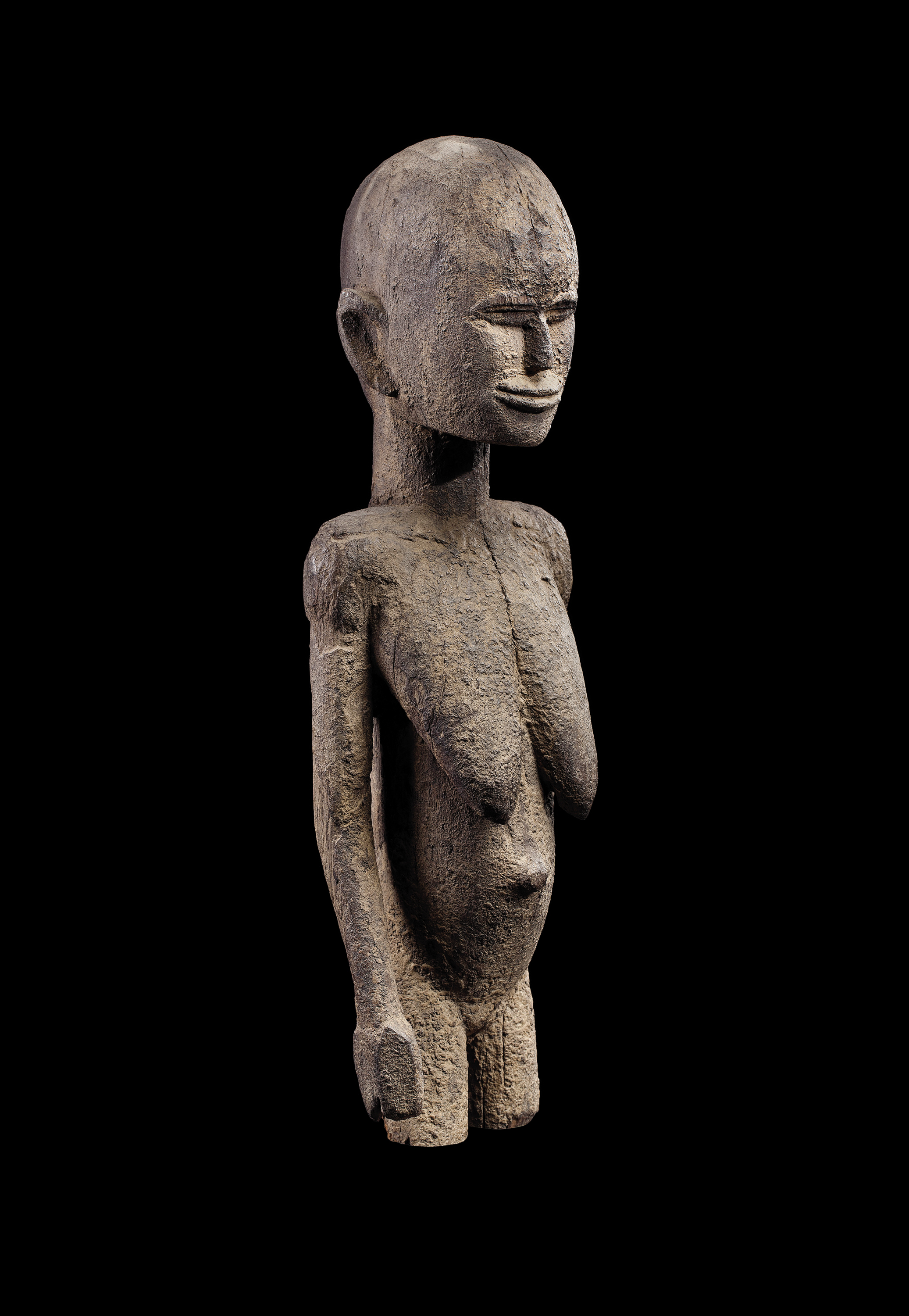 Figurine féminine, « Maître des mains géantes », Côte d’Ivoire, région akyé, vers 1920. H. : 45,5 cm. © Musée des Civilisations de Côte d’Ivoire, Abidjan, Inv. 42-3-315. Provenance inconnue, avant 1942.
