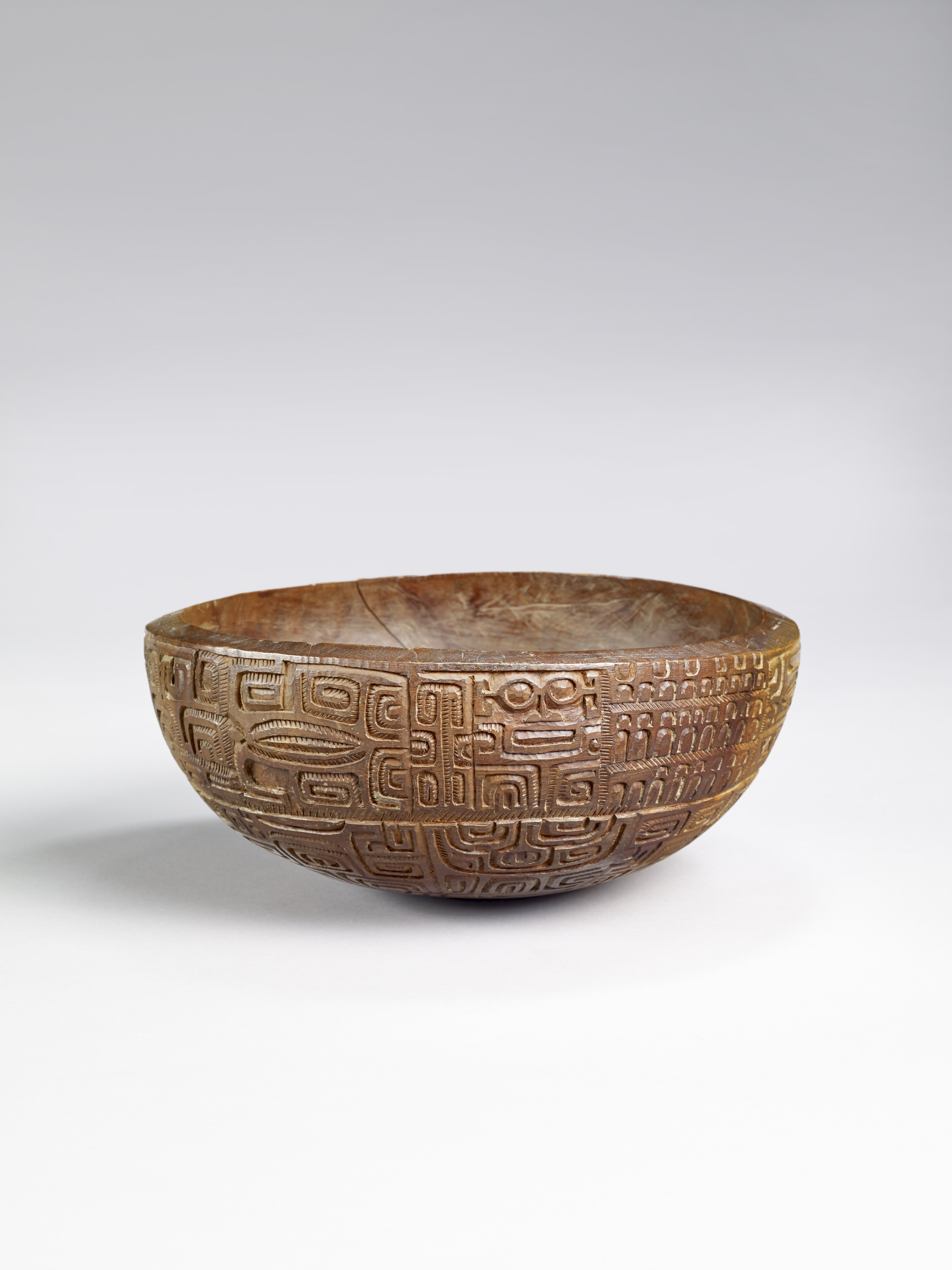 Bol à nourriture kookã, îles Marquises, début du XXe siècle. Bois sculpté et gravé. Dim. : 10 x 26 x 26 cm. Ex-coll. Stéphen Chauvet. © Musée du quai Branly, Inv. 71.1930.29.348. Photo : C. Germain.