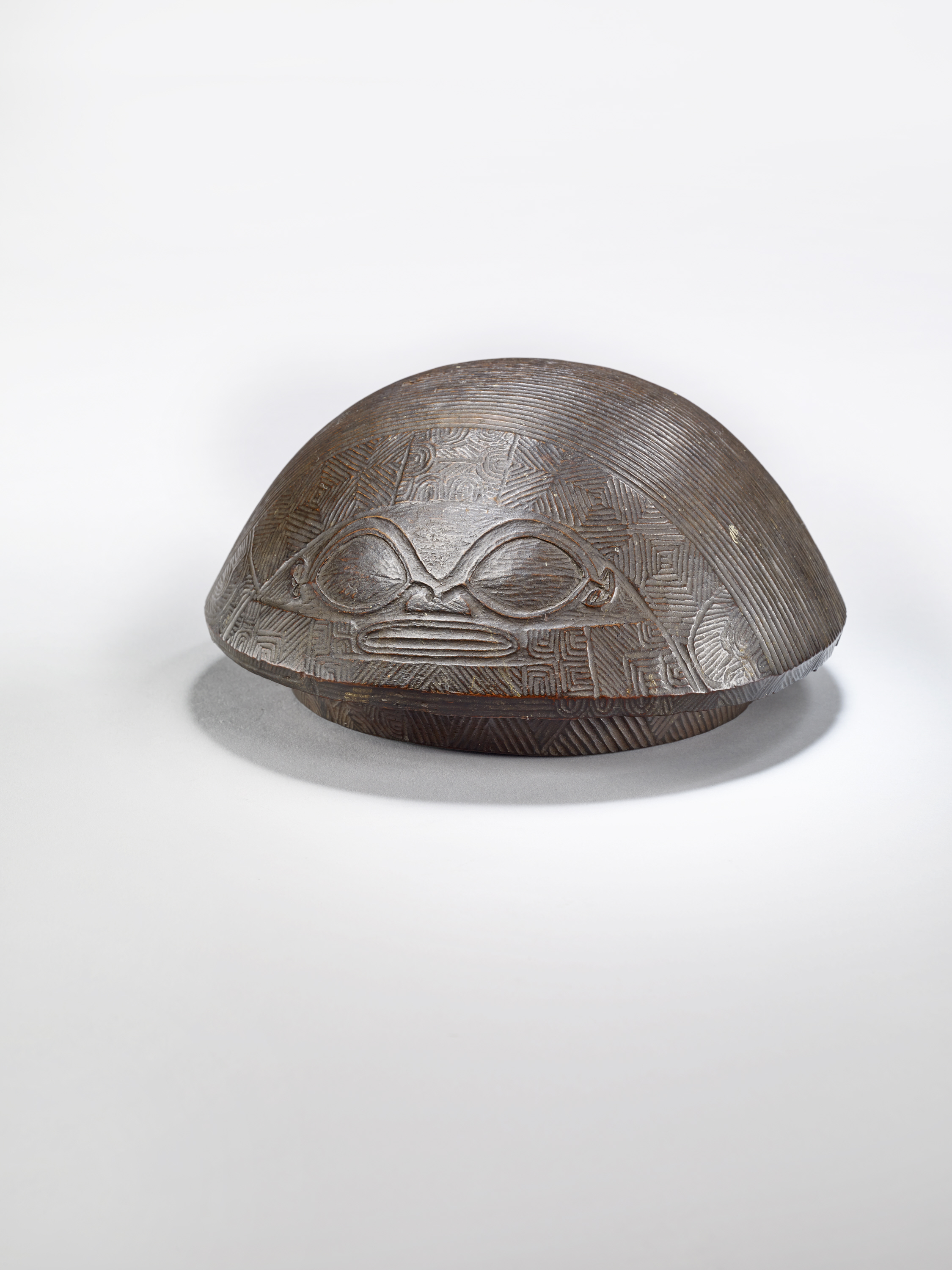Couvercle de gourde tiha, tifa, tīkomo, îles Marquises, XIXe siècle. Bois sculpté et gravé. Dim. : 11 x 19 x 19 cm. Don Louis Capitan. © Musée du quai Branly, Inv. 71.1888.46.1. Photo : C. Germain.