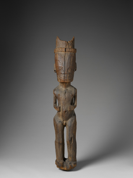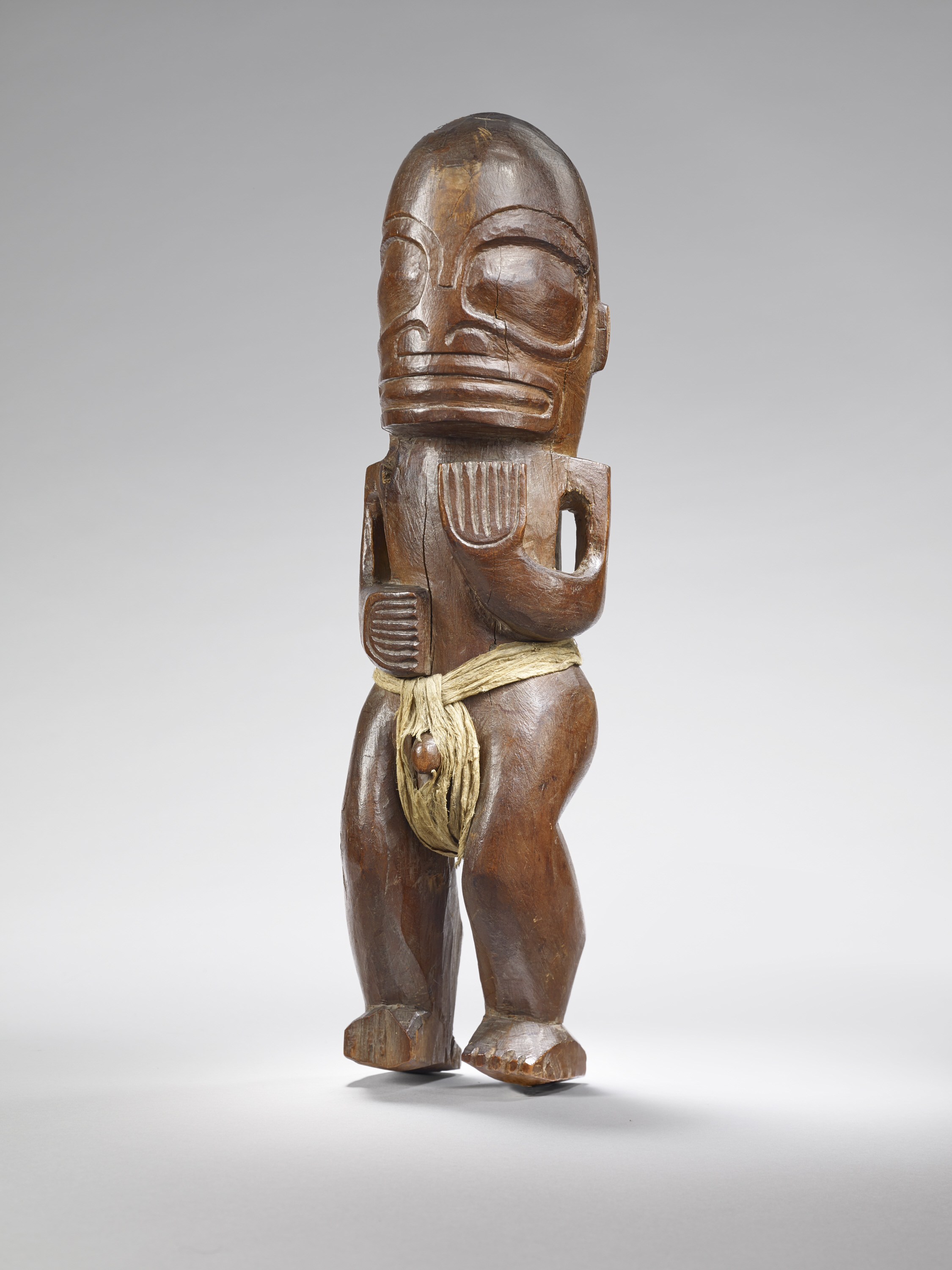 Sculpture anthropomorphe tiki ôkau, îles Marquises, première moitié du XIXe siècle. Bois et tapa. H. : 38 cm. Don prince Roland Bonaparte. © Musée du quai Branly, Inv. 71.1887.31.25. Photo : C. Germain.
