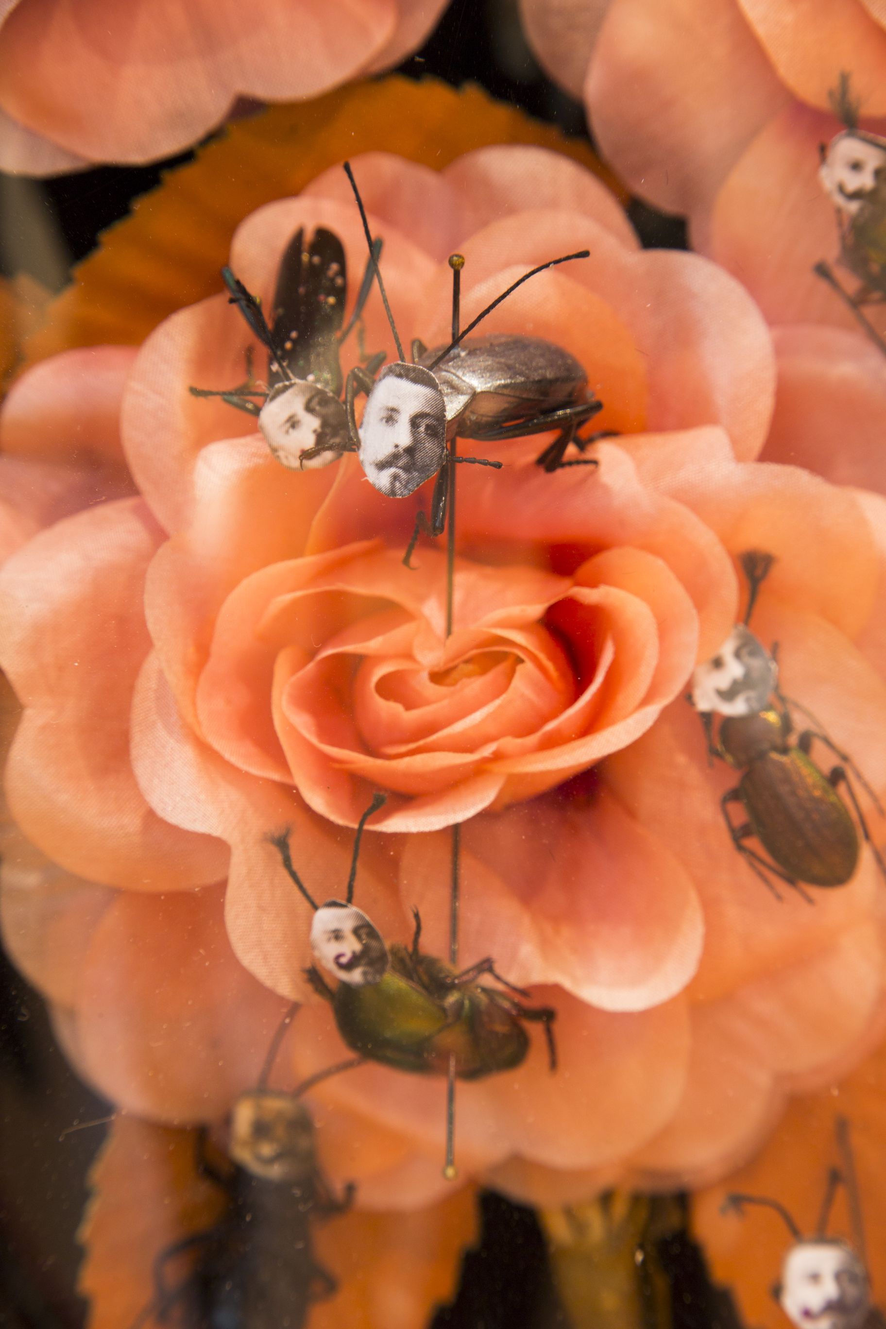 Si l’omniprésence de la mort, les reliques et les jeux de masques rapprochent les deux artistes, Coco Fronsac, avec ses détournements d’images, n’essaie pas d’apprivoiser la mort, mais s’en amuse. Quand elle pare de masques les visages de personnes depuis longtemps disparues, c’est pour leur donner une seconde vie et pour nous projeter dans une nouvelle réalité, vivante et subjective. L’univers de Loti ne pouvait que la séduire. En sa compagnie, elle accomplit un voyage inattendu, mêlant leurs souvenirs et leurs obsessions avec la volonté de transformer la banalité du quotidien pour susciter le merveilleux.