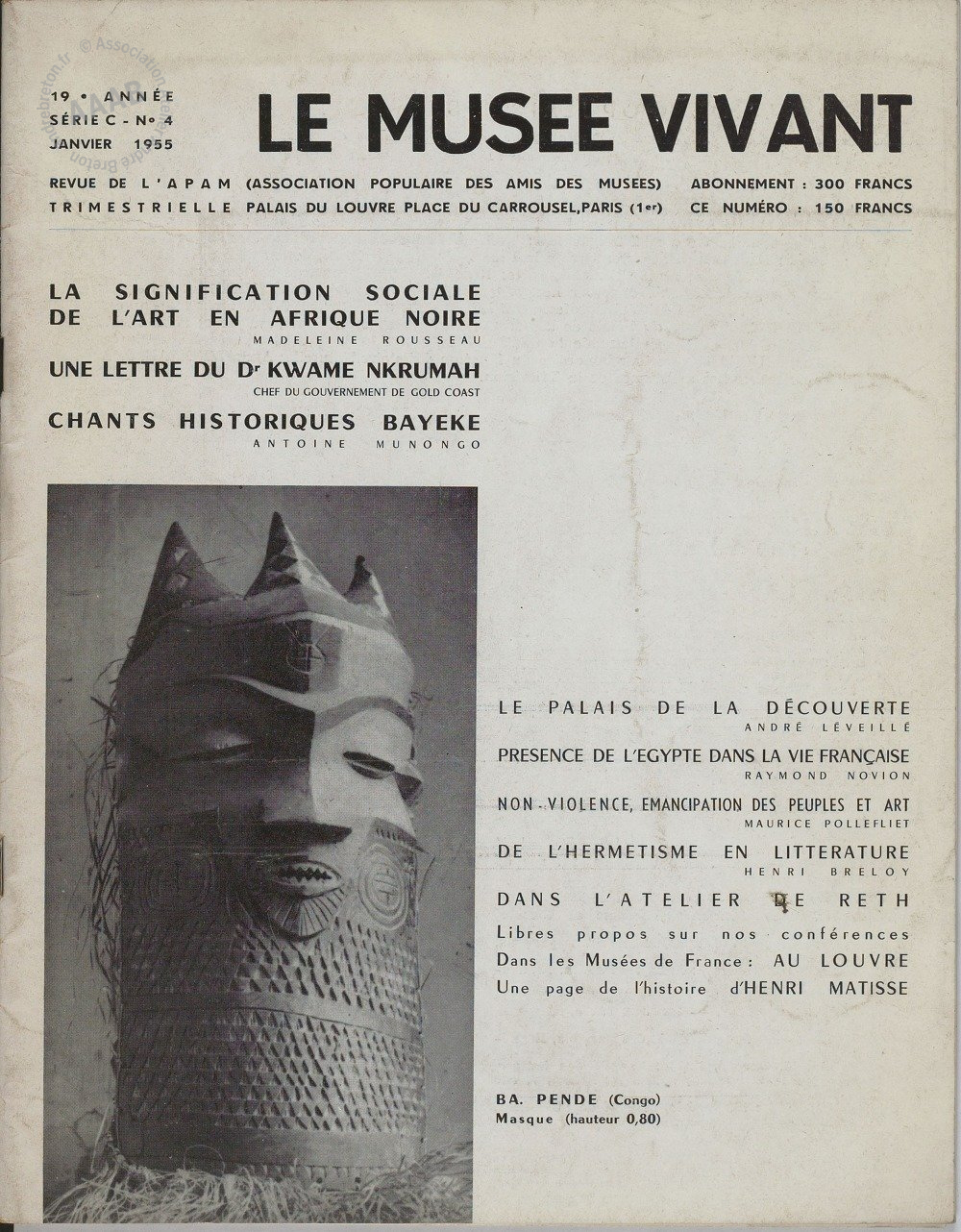 34. « Quels sont les styles de l’art nègre ? », Le Musée Vivant, novembre, 1948.