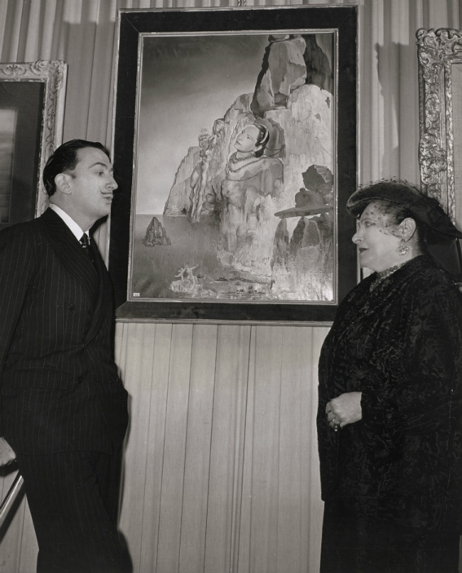 Photographe inconnu. Salvador Dali et Helena Rubinstein devant son portrait par le peintre. New York, après 1943. © Paris, archives Helena Rubinstein – L’Oréal.