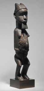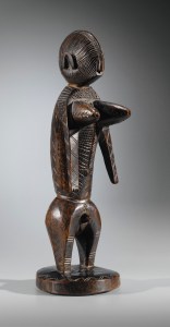 Figure hermaphrodite, Teke, République démocratique du Congo. Bois, coquillage et matières magiques. H. : 69,9 cm. Ex-coll. Helena Rubinstein ; Hy Klebanow, New York ; Alan Brandt, New York ; Myron Kunin, Minneapolis. Coll. privée. © Sotheby’s, 11 novembre 2014.