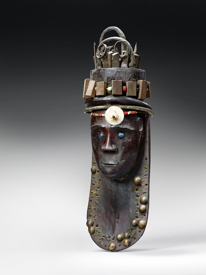 Amulette, Bara, Madagascar, XIXe siècle. Bois, métal, verre, coquillage, coton et matières organiques. H. : 31 cm. © Musée du quai Branly-Jacques Chirac. Photo Claude Germain. Inv. 72.2012.0.68.