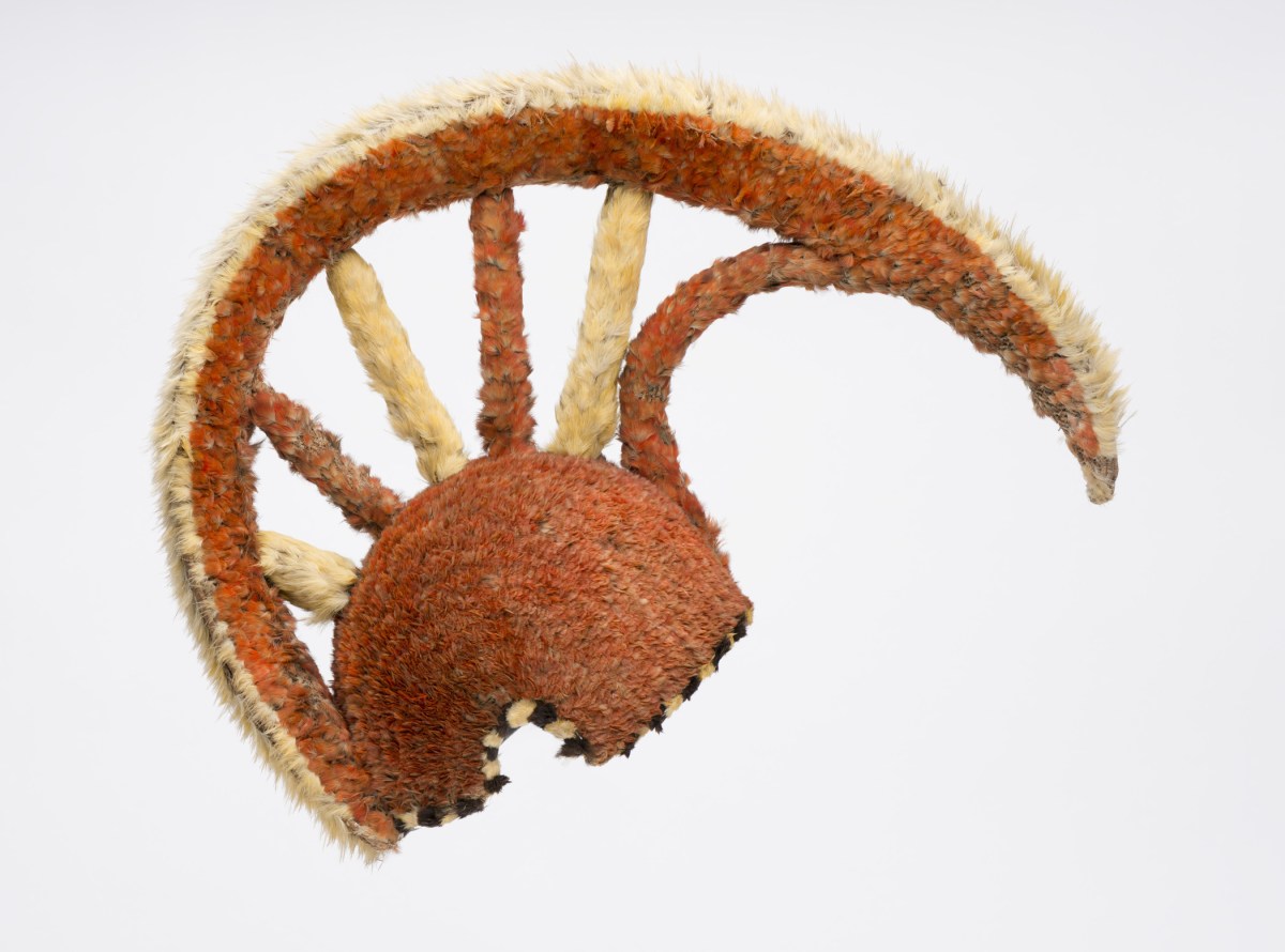 Casque (mahiole), Hawaii, XVIIIe siècle. Fibres végétales et plumes. Dim. : 44 x 54 x 16,5 cm. Collecté par le capitaine Gray (1789). Don des héritiers de David Kimball, 1899. © Peabody Museum of Archaeology and Ethnology. Photo : President and Fellows of Harvard College. Inv. 99-12-70/53559.