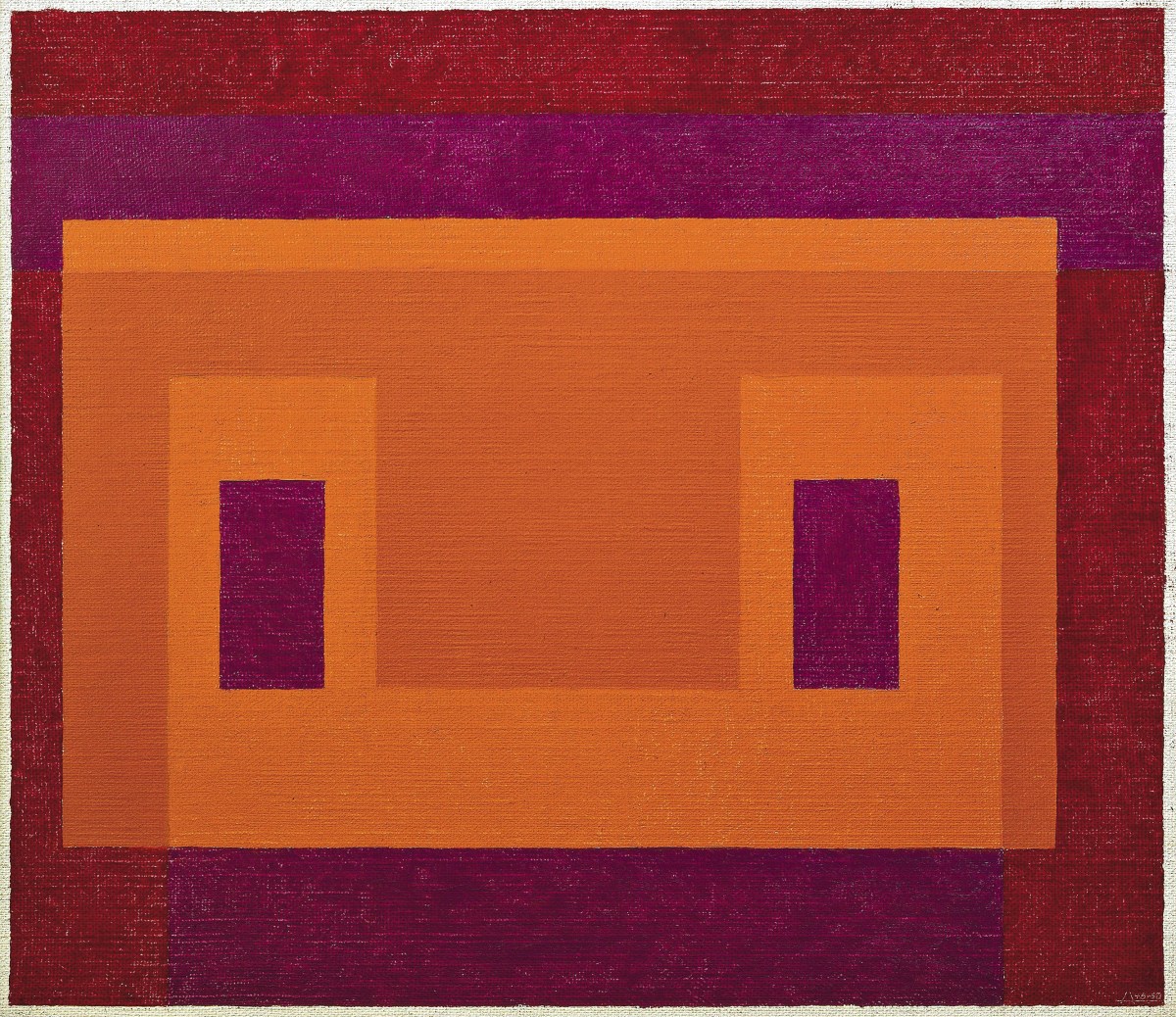 Josef Albers (1888-1976), « Variant/Adobe, Orange Front », 1948-1958. Huile sur Masonite. Dim. : 59,6 x 68,5 cm. The Solomon R. Guggenheim Foundation, Gift, The Josef and Anni Albers Foundation in honor of Philip Rylands for his continued commitment to the Peggy Guggenheim Collection, 1997. © The Josef and Anni Albers Foundation/Artists Rights Society (ARS), New York. Inv. 97.4555.