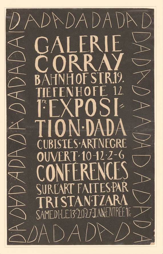Marcel Janco (1895-1984), poster de la « 1re Exposition Dada Cubistes, Art nègre, Galerie Corray », 1917. Papier imprimé. Dim. : 42,5 × 26,4 cm. © Kunsthaus Zürich.