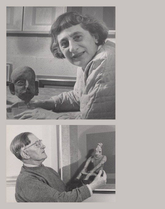 Lee Boltin (1917-1991), « Anni Albers tenant une tête précolombienne », 1958 • « Josef Albers tenant une statuette devant Homage to the Square: Auriferous », 1958. Épreuves à la gélatine argentique. © Lee Boltin. Photos Courtesy the Josef and Anni Albers Foundation/Artists Rights Society (ARS), New York. Inv. 1976.28.926 et 1976.28.923.