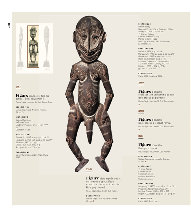 « Galerie Pigalle – Afrique – Océanie. 1930. Une exposition mythique ». Catalogue Océanie, p. 280.