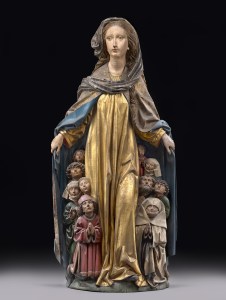 Vierge de Miséricorde (vers 1480), par Ulm Michel Erhart (entre 1440 et 1445-après 1522), Ulm, Allemagne. Bois de tilleul polychrome. H. : 135 cm. © Staatliche Museen zu Berlin – Preußischer Kulturbesitz, Skulpturensammlung.