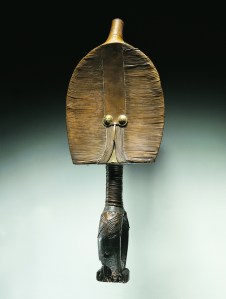 Figure de reliquaire mahongwé, bwiti, Kota ou Kélé, Gabon, XIXe siècle. Bois et cuivre. H. : 53 cm. © Staatliche Museen zu Berlin – Preußischer Kulturbesitz, Ethnologisches Museum. Photo : Martin Franken.