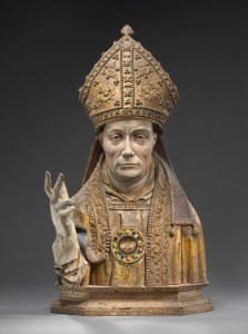Buste reliquaire d’un évêque, vers 1520, Bruxelles (?), Belgique. Chêne polychrome. H. : 80,2 cm. © Staatliche Museen zu Berlin – Preußischer Kulturbesitz, Skulpturensammlung und Museum für Byzantinische Kunst. Photo : Antje Voigt.