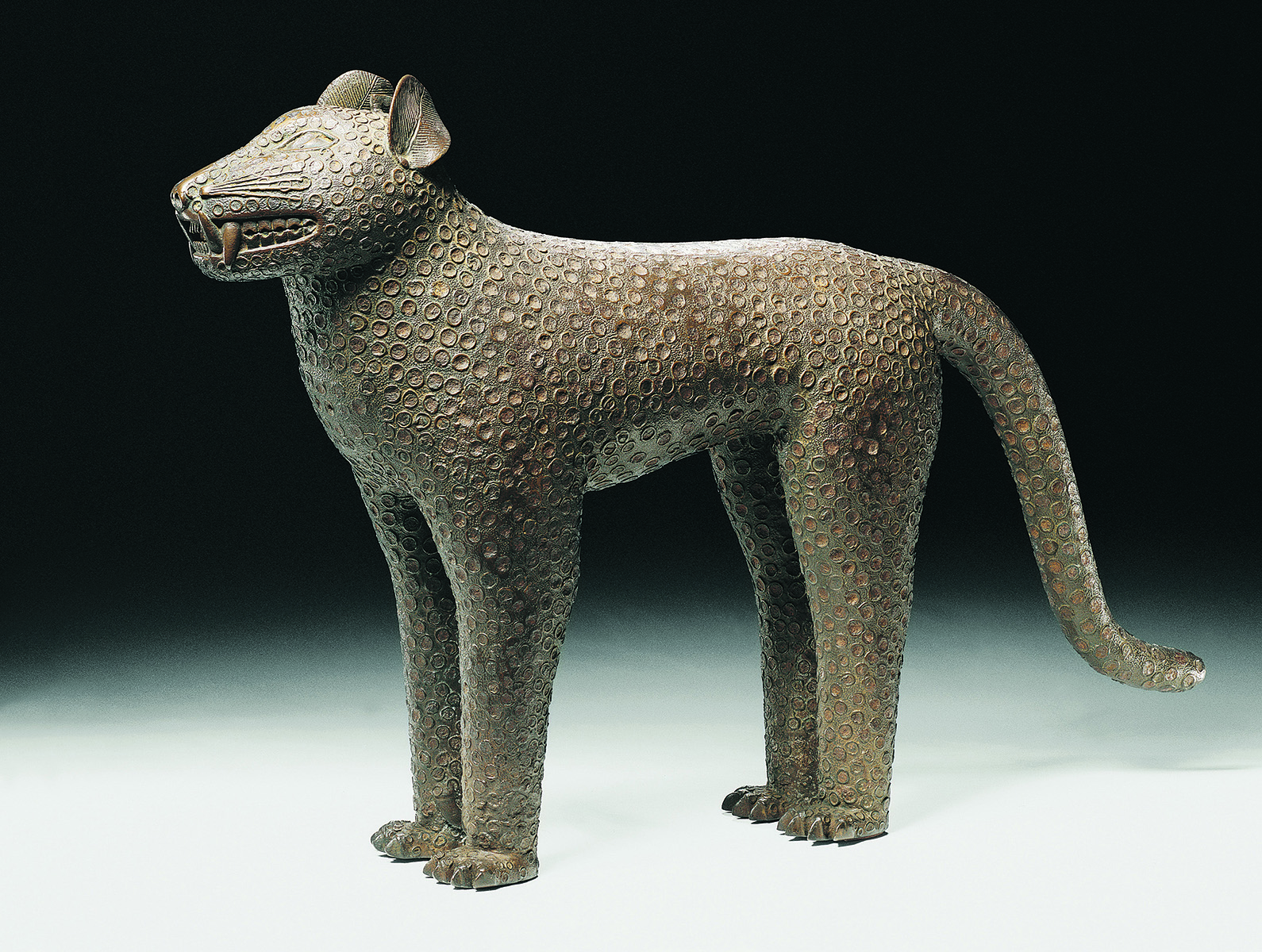 Aquamanile en forme de léopard, royaume du Bénin, Nigéria, XVIIe siècle. Laiton. Dim. : 44 x 15 x 66,5 cm. © Staatliche Museen zu Berlin – Preußischer Kulturbesitz, Ethnologisches Museum. Photo : Martin Franken.