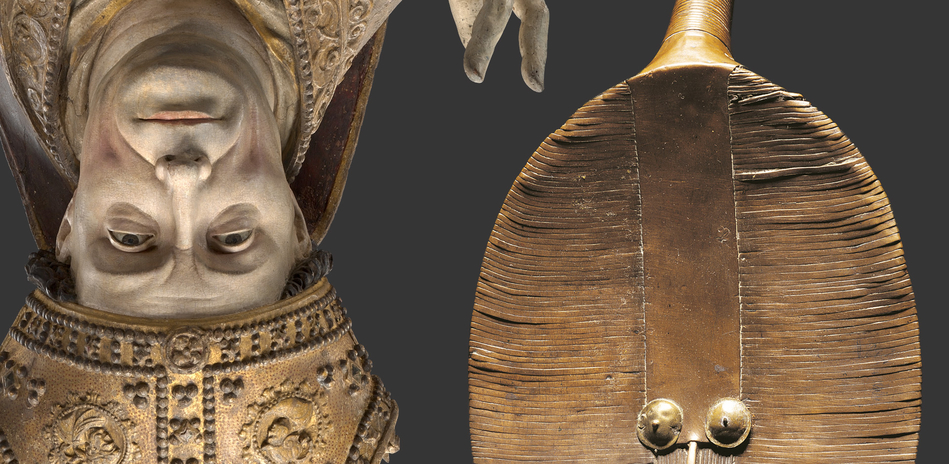 « Incomparable : l’art d’Afrique au musée Bode » : Buste reliquaire d’un évêque, vers 1520, Bruxelles (?), Belgique. – Reliquaire mahongwé, bwiti, Kota ou Kélé, Gabon, XIXe siècle. © Staatliche Museen zu Berlin. Photo : David von Becker.