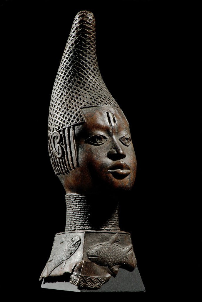 Tête d’une reine-mère ioyba, royaume du Bénin, Nigéria, XVIe siècle. Alliage de cuivre. H. : 51 cm. © Staatliche Museen zu Berlin – Preußischer Kulturbesitz, Ethnologisches Museum. Photo : Jürgen Liepe.