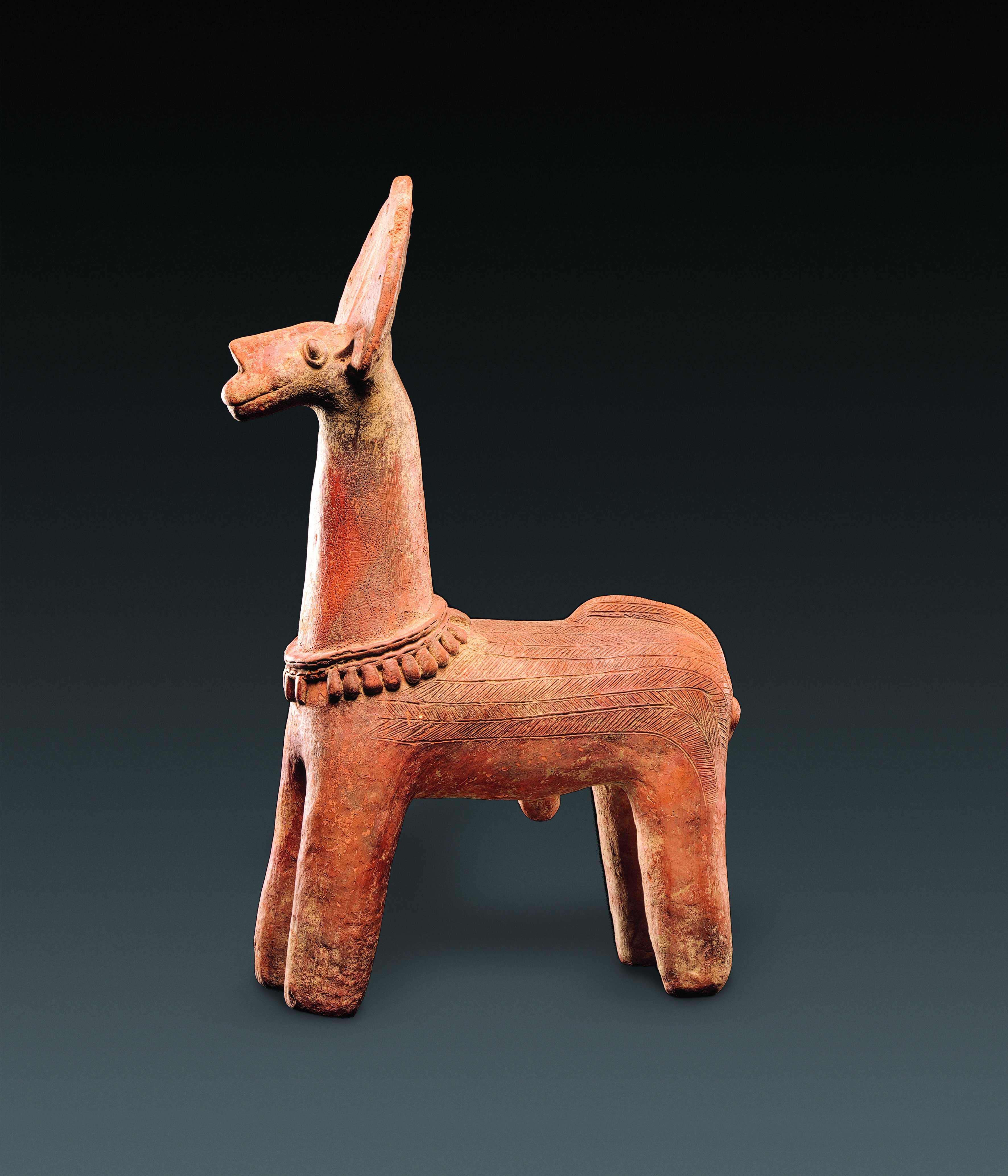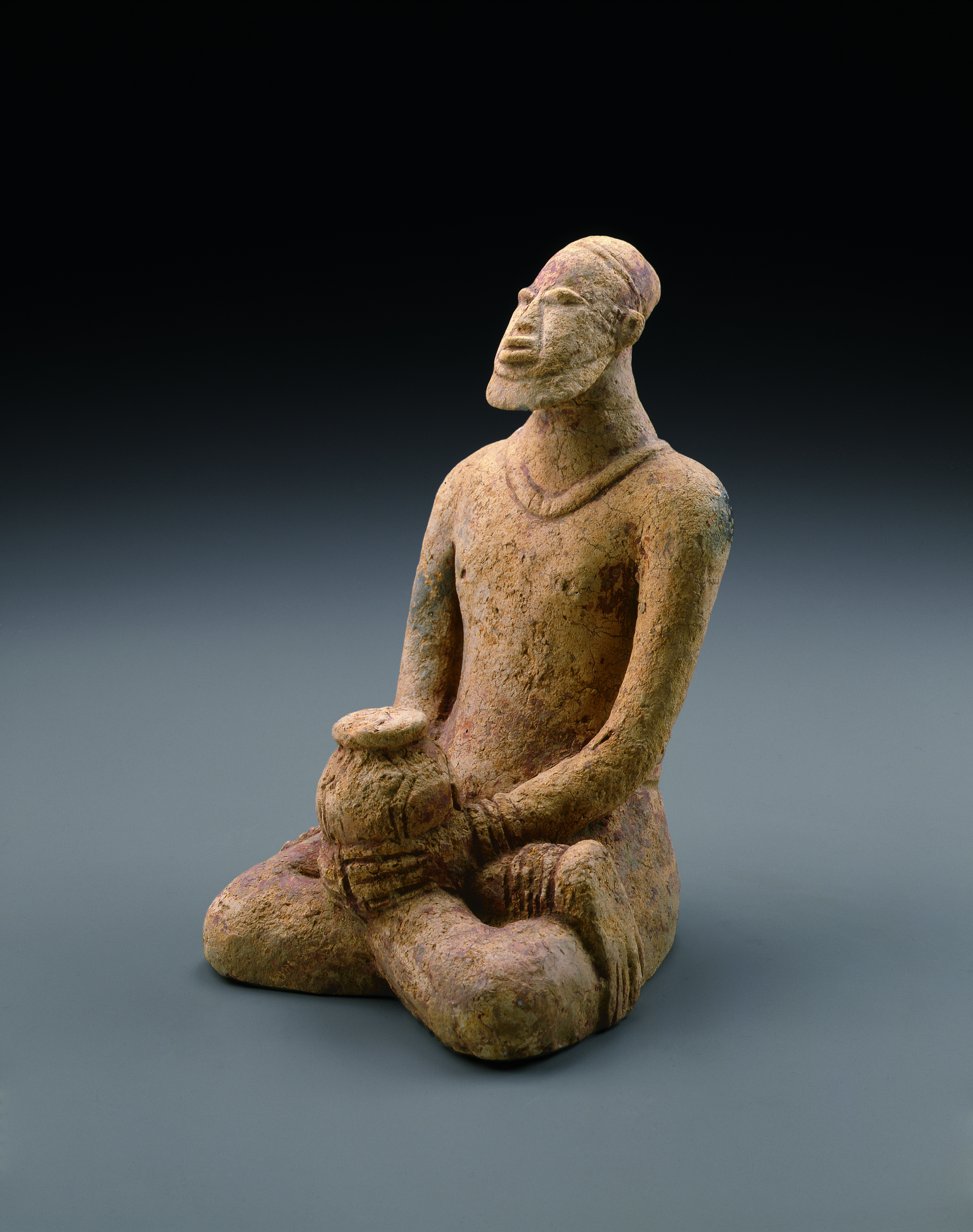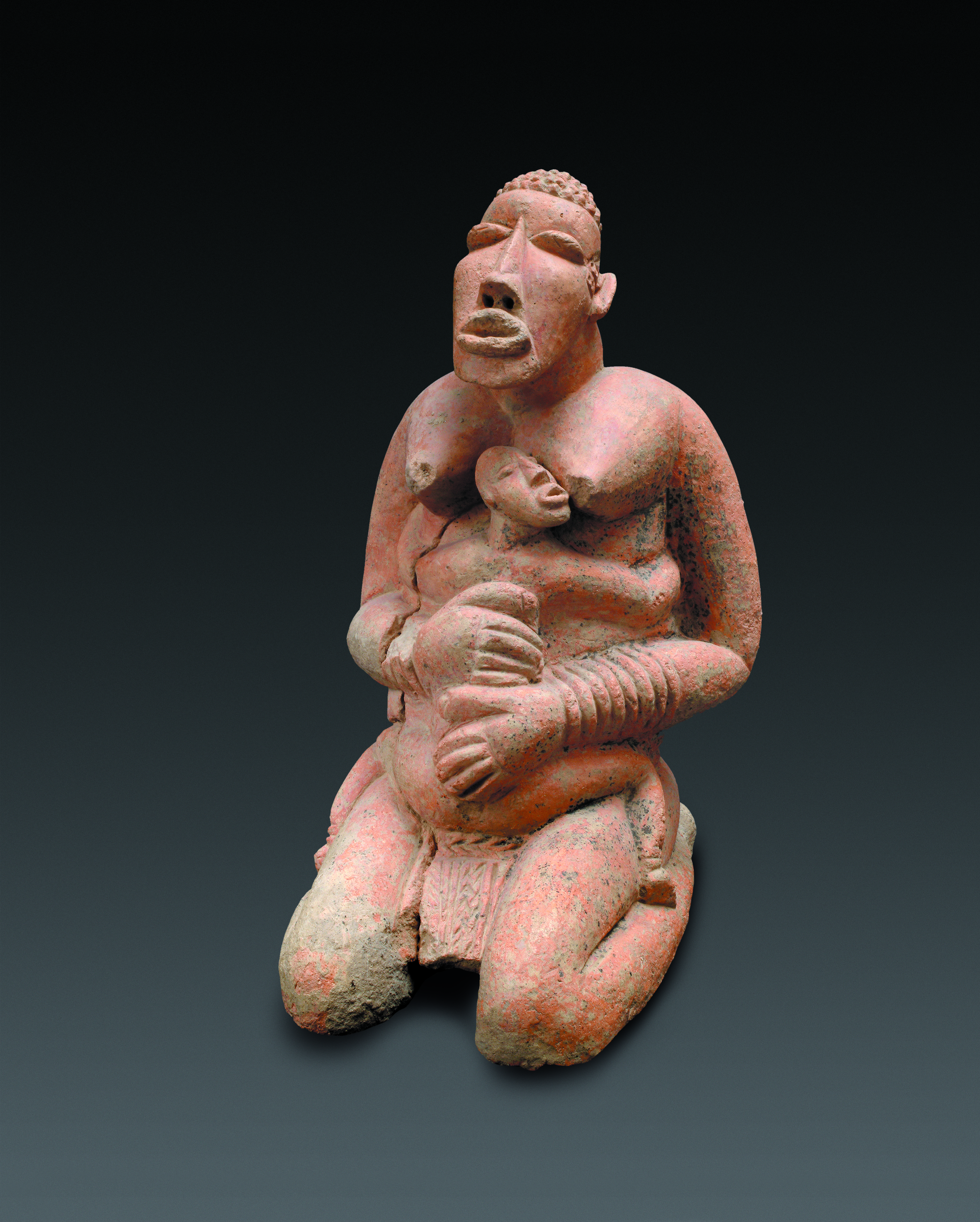 Les Mayas ont également produit de nombreuses figurines en argile, modelées ou moulées, parmi lesquelles se distinguent celles provenant de la petite île de Jaina. Orientée vers le soleil couchant, elle fut choisie comme nécropole par les Mayas Puuc de la côte de Campeche. D’une très grande diversité, ces ravissantes statuettes réalistes, souvent rehaussées de couleurs et notamment du fameux « bleu maya », ont été trouvées parmi les offrandes d’un grand nombre de sépultures de la période classiques où elles guidaient les défunts vers leur destination finale. Certaines d’entre elles font également office d’instruments de musique (sifflets et grelots), la musique accompagnant aussi les morts. Ces créations, témoignant d’un art jamais figé où le naturalisme se conjugue à l’idéalisme avec une merveilleuse faculté d’invention sont autant de voies d’accès aux croyances religieuses, aux rites, à la vie des communautés et à l’histoire des Mayas.