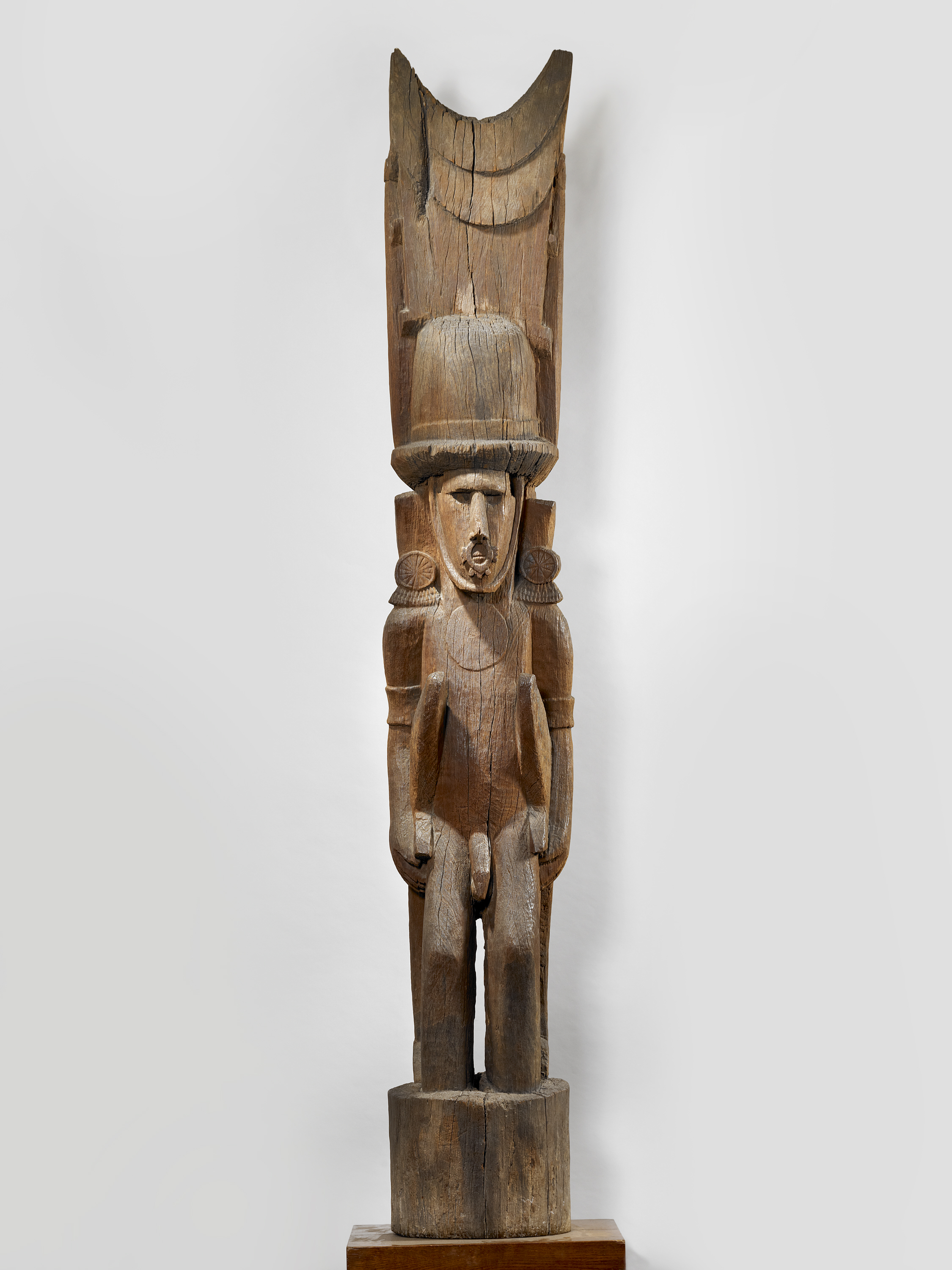Communément appelée la « Reine d’Uxmal », ce couronnement architectural semble toutefois représenter un personnage masculin, peut-être un seigneur, qui a subi le rite initiatique qui consiste à être avalé par un serpent ochkan, (un boa), pour être ensuite régurgité une fois devenu prêtre-chaman. Dim. : 82 x 24 cm. Uxmal, Yucatán, Mexique Classique récent (600-800 ap. J.-C.). © Museo Nacional de Antropología, Mexico. Photo : I. Guevara.