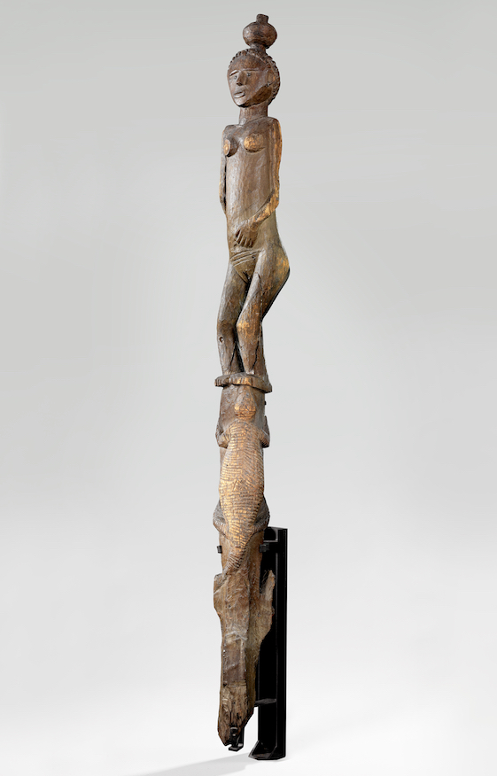 Poteau funéraire anthropomorphe, Bara, Madagascar, avant 1906. Bois. H. : 283 cm. © Musée du quai Branly-Jacques Chirac. Photo Claude Germain. Inv. 71.1906.21.21.
