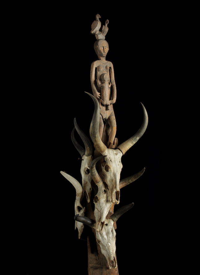Poteau funéraire, Bara, Sakalava, Antanosy, Madagascar, vers 1898. Bois, crânes de bovinés, métal et perles. H. : 306 cm. © Musée du quai Branly-Jacques Chirac. Photo Thierry Ollivier et Michel Urtado. Inv. 71.1901.6.11.