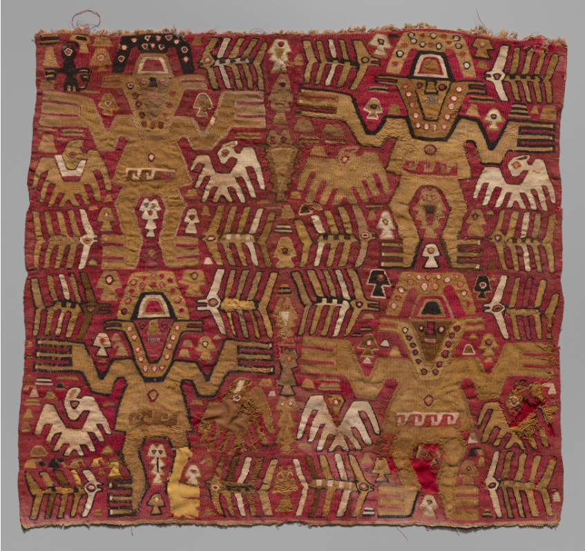 Tissu orné de figures humaines et d’oiseaux, Chimú, Pérou, 1000-1476 ap. J.-C. Coton. Dim. : 63,5 x 58,4 cm. © Yale Peabody Museum of Natural History. Inv. YPMANT.232177.